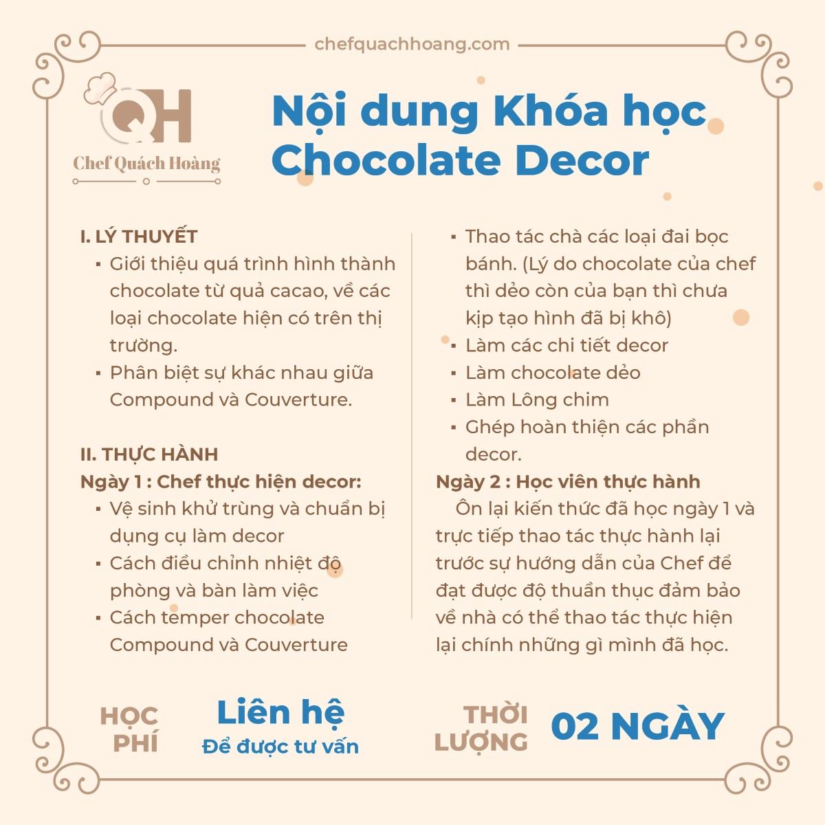 Học cách làm chủ hoàn toàn các loại chocolate, nắm vững cách xác định mẫu decor và pha màu chocolate sao cho đẹp, sang.